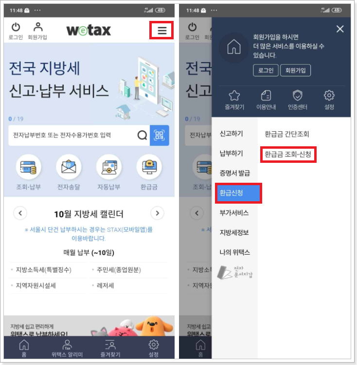 환급 신청 절차