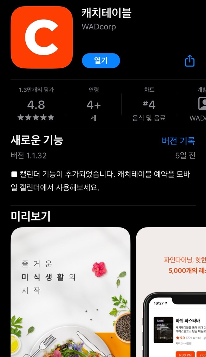 캐치테이블 앱 다운로드 방법